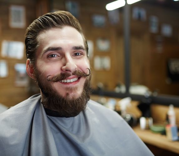 Enjoy a haircut with a detailed beard trim, finished with a relaxing hot towel for the ultimate grooming experience.